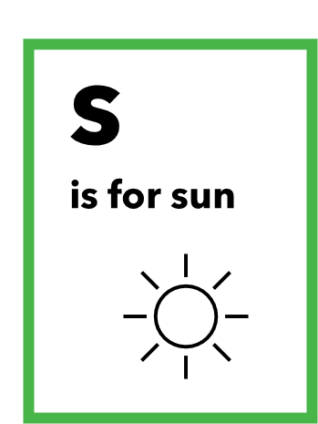 1. Flashcards with the letter S and objects/pictures starting with S (sun, snake, star, etc.)